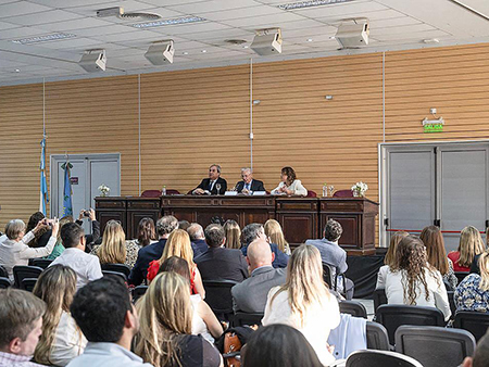 El Dr. Torres disertó sobre desarrollo sostenible y derecho ambiental, en una mesa en la que estuvo acompañado por el Presidente y la Vicepresidenta II de la Comisión de Funcionarios del Colegio de Magistrados y Funcionarios provincial (CMFBSAS), Norberto Gioia y Josefina Peláez, respectivamente.