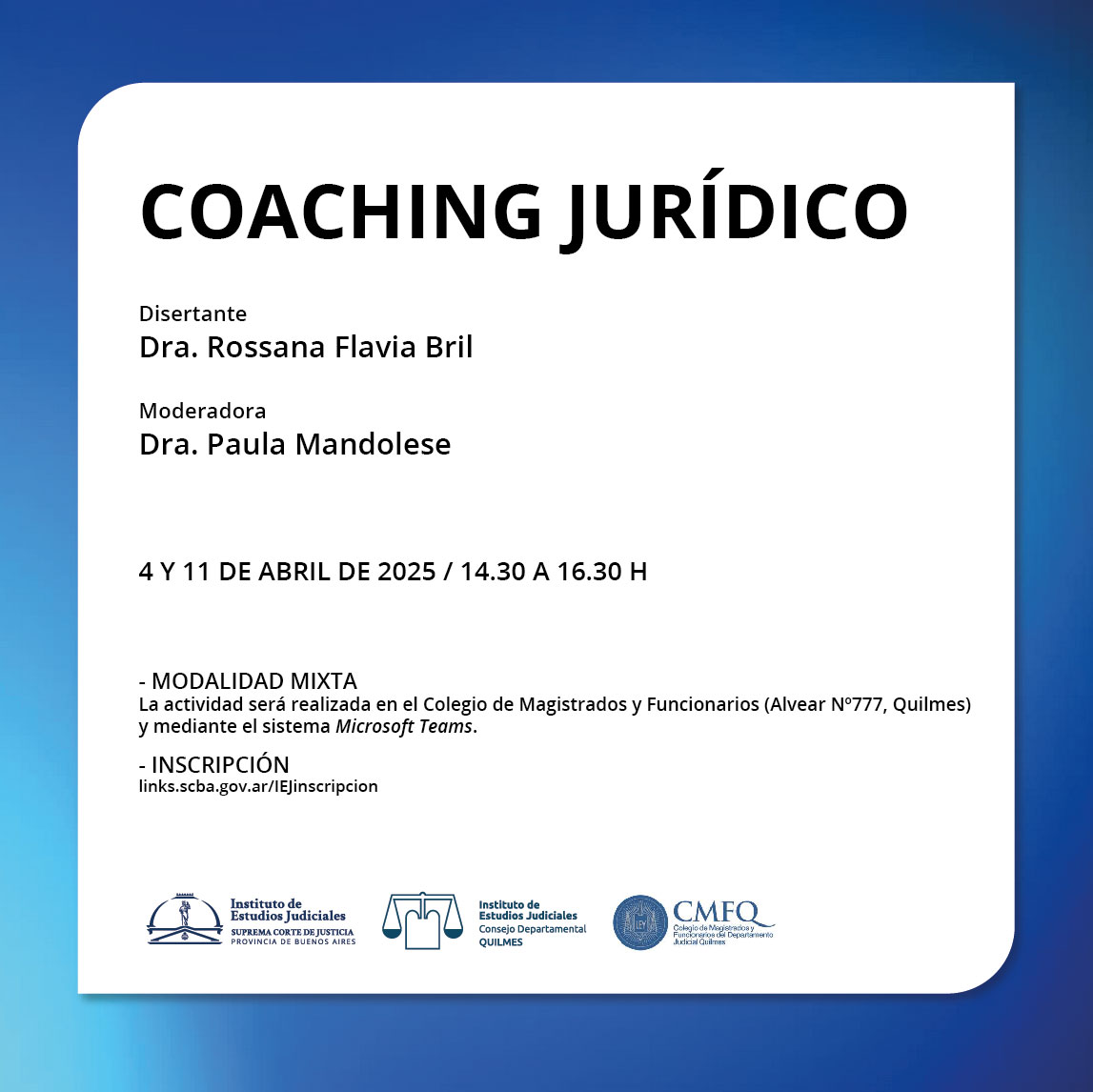 Organizado junto con el Consejo departamental del IEJ y el Colegio de Magistrados y Funcionarios del departamento judicial Quilmes