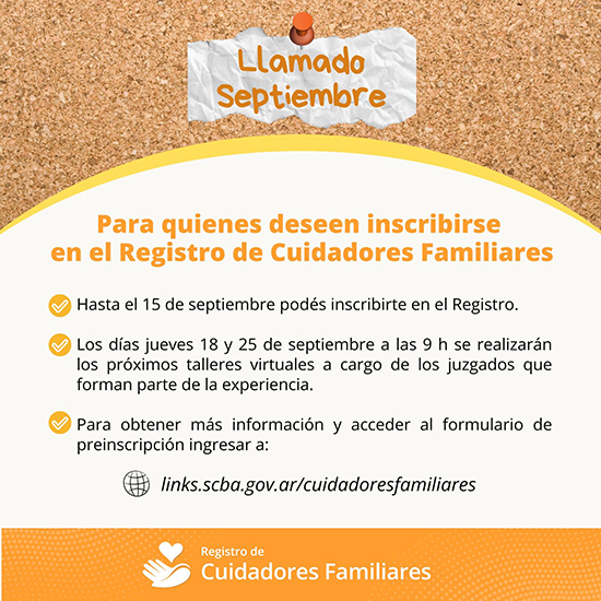 Hasta el 15 de septiembre se encuentra abierta la inscripción para las personas con domicilio en la provincia de Buenos Aires interesadas en integrar el Registro de Cuidadores Familiares.