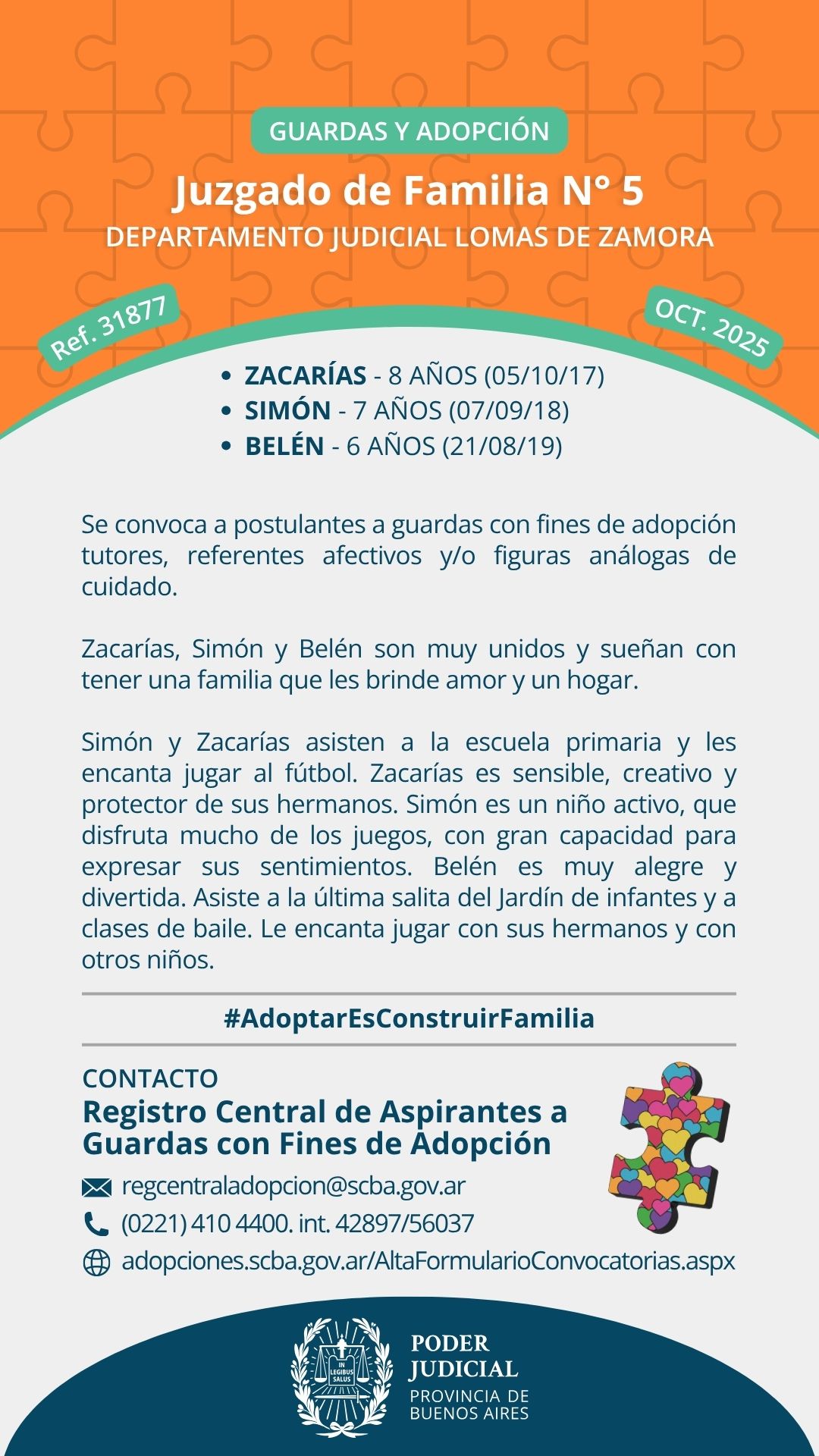 Cabe aclarar que el ofrecimiento e inscripción a una Convocatoria Pública, vale solo y exclusivamente para esa Convocatoria y esos/as niños, niñas o adolescentes en particular. Si las personas desean inscribirse para ser convocados por otros/as niños, niñas o adolescentes indeterminados/as en situación de adoptabilidad, deben inscribirse en el Registro Central de Aspirantes a Guardas con fines de Adopción por medio de este formulario. Completar un formulario respondiendo a una Convocatoria Pública es, ni más ni menos, que un ofrecimiento a cuidar, amar y acompañar a un niño, niña o adolescente con derechos vulnerados. Dada la importancia que reviste, solicitamos completar un formulario por vez para evitar superposiciones y sostener el compromiso con la búsqueda de familia para la que realizan el ofrecimiento.