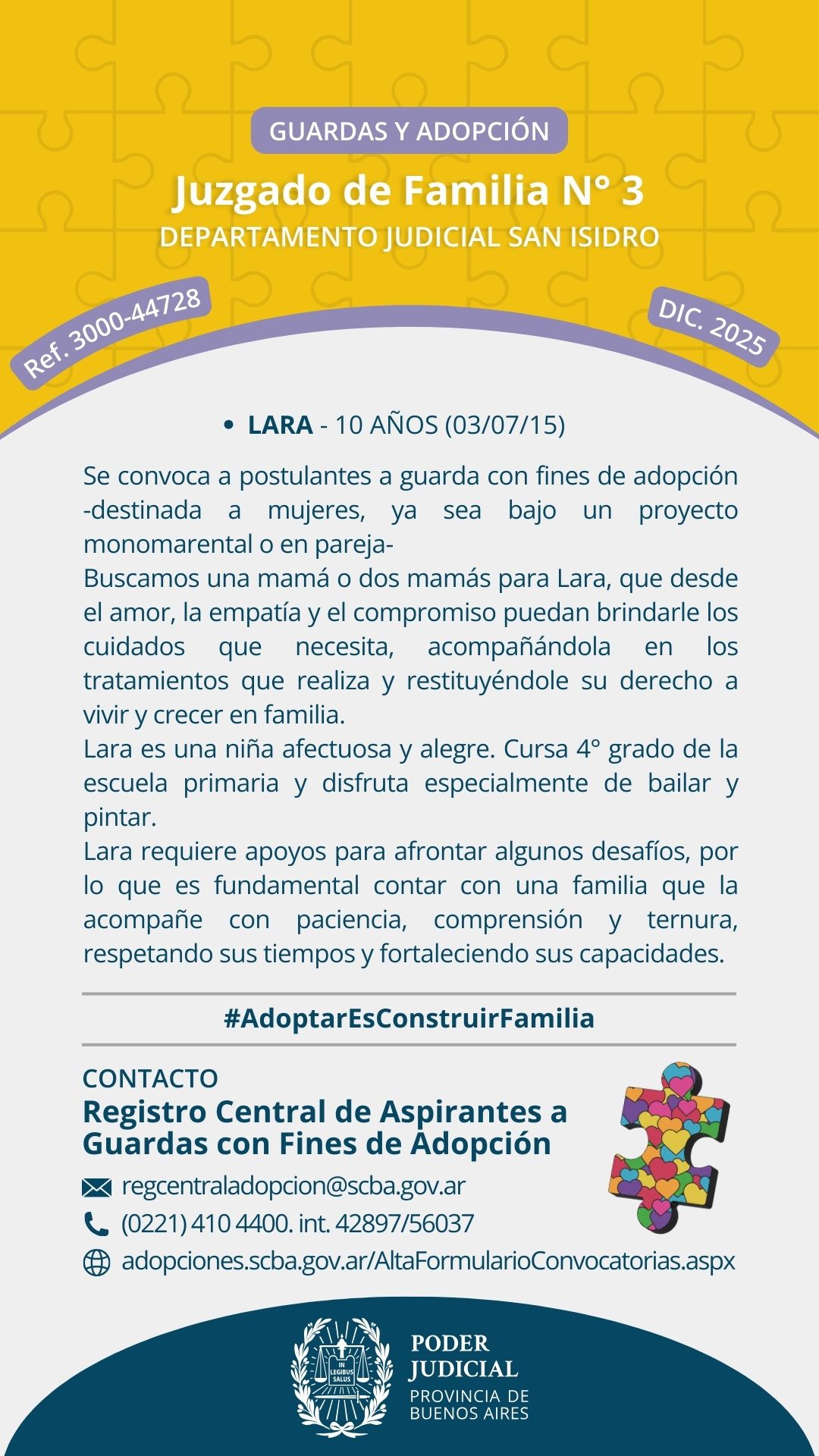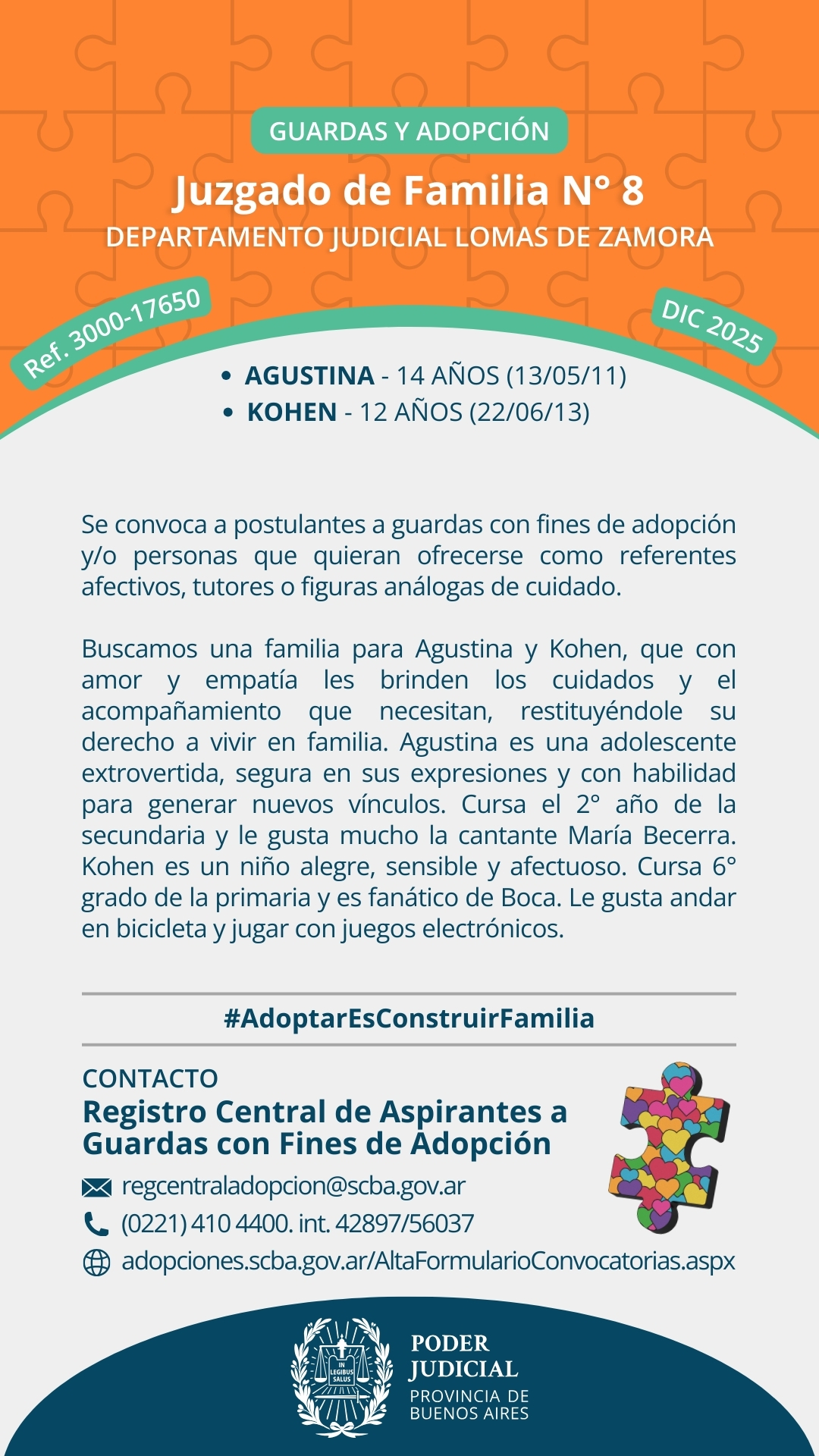 Cabe poner de resalto que las Convocatorias Públicas solo pueden ordenarse cuando no se han encontrado postulantes compatibles con ese niño, niña o adolescente en los Registros de Adoptantes y en el de Cuidadores. Estos llamados son efectuados por publicaciones en diferentes diarios, en redes sociales y en la página web de la Suprema Corte de Justicia.