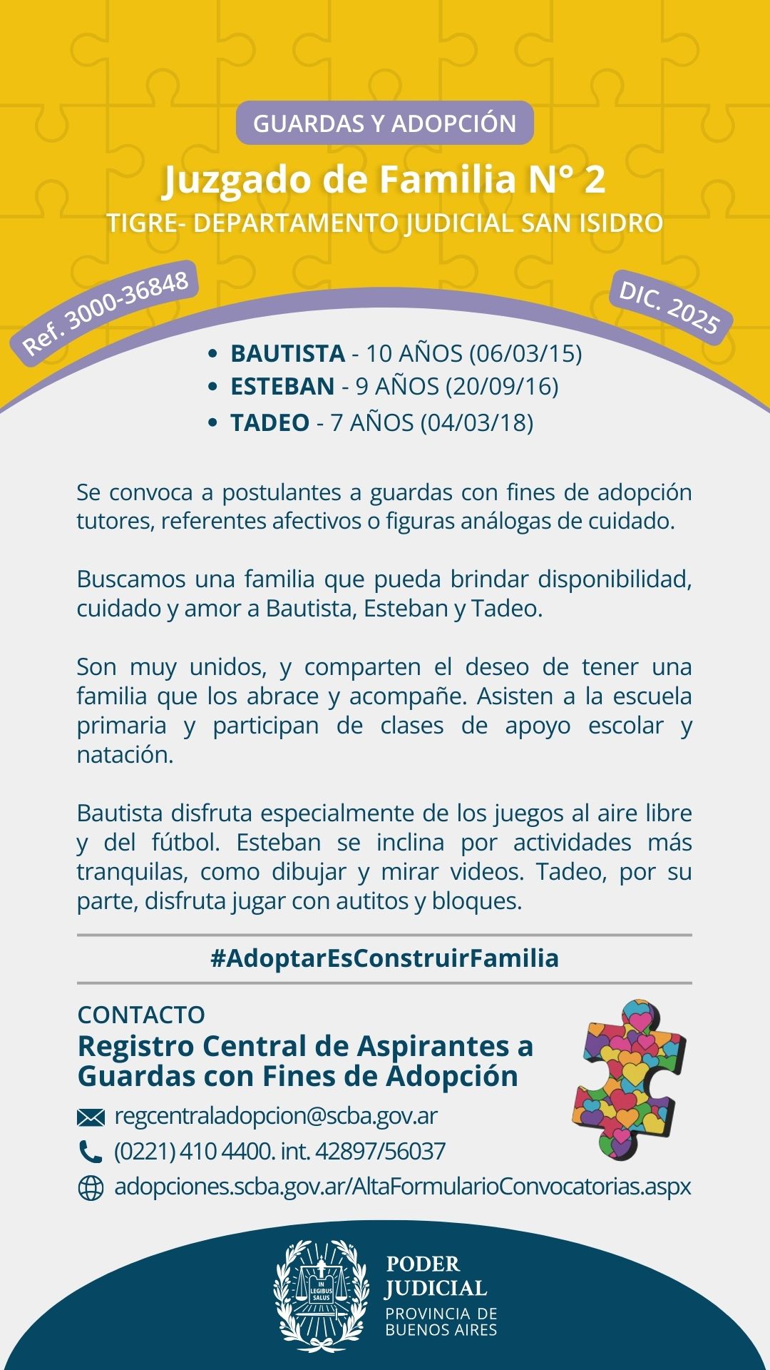 “Las búsquedas de familias por Convocatoria Pública son llamados a personas que se ofrecen para incorporar a sus familias a niños, niñas o adolescentes. Estas personas pueden, o no, estar inscriptas previamente en algún Registro de Adoptantes y tener domicilio en provincia de Buenos Aires o en el resto del país.