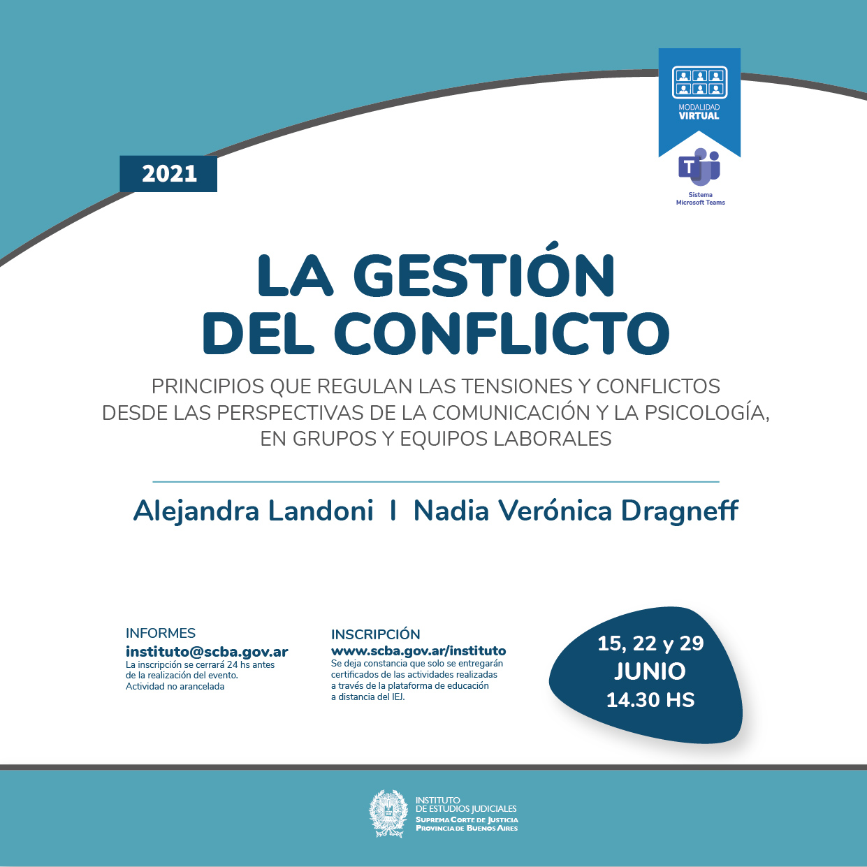 15-06-2021 | La Gestión del Conflicto. Principios que regulan las tensiones y conflictos desde las perspectivas de la comunicación y la Psicología, en grupos y equipos laborales ( a distancia )