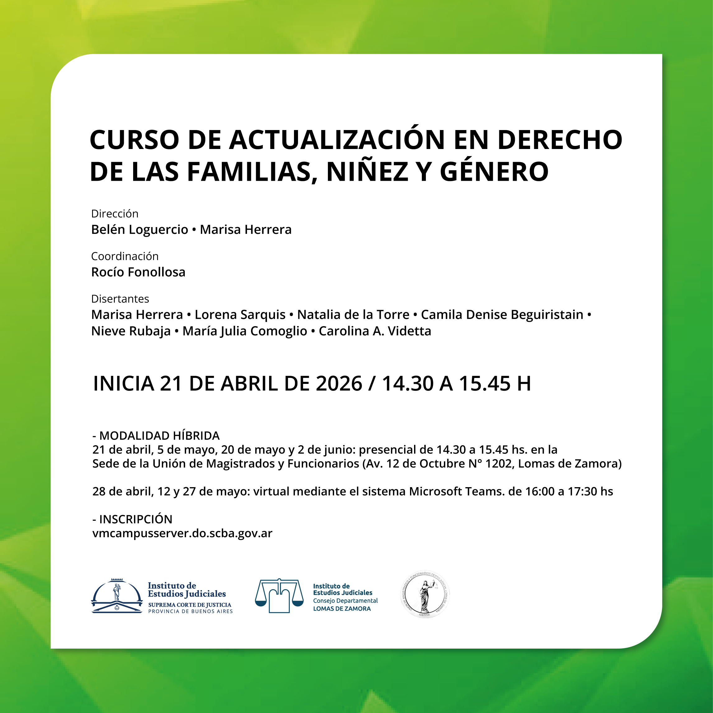 21-04-2026 | LOMAS DE ZAMORA - Curso de actualización en Derecho de las Familias, Niñez y Género