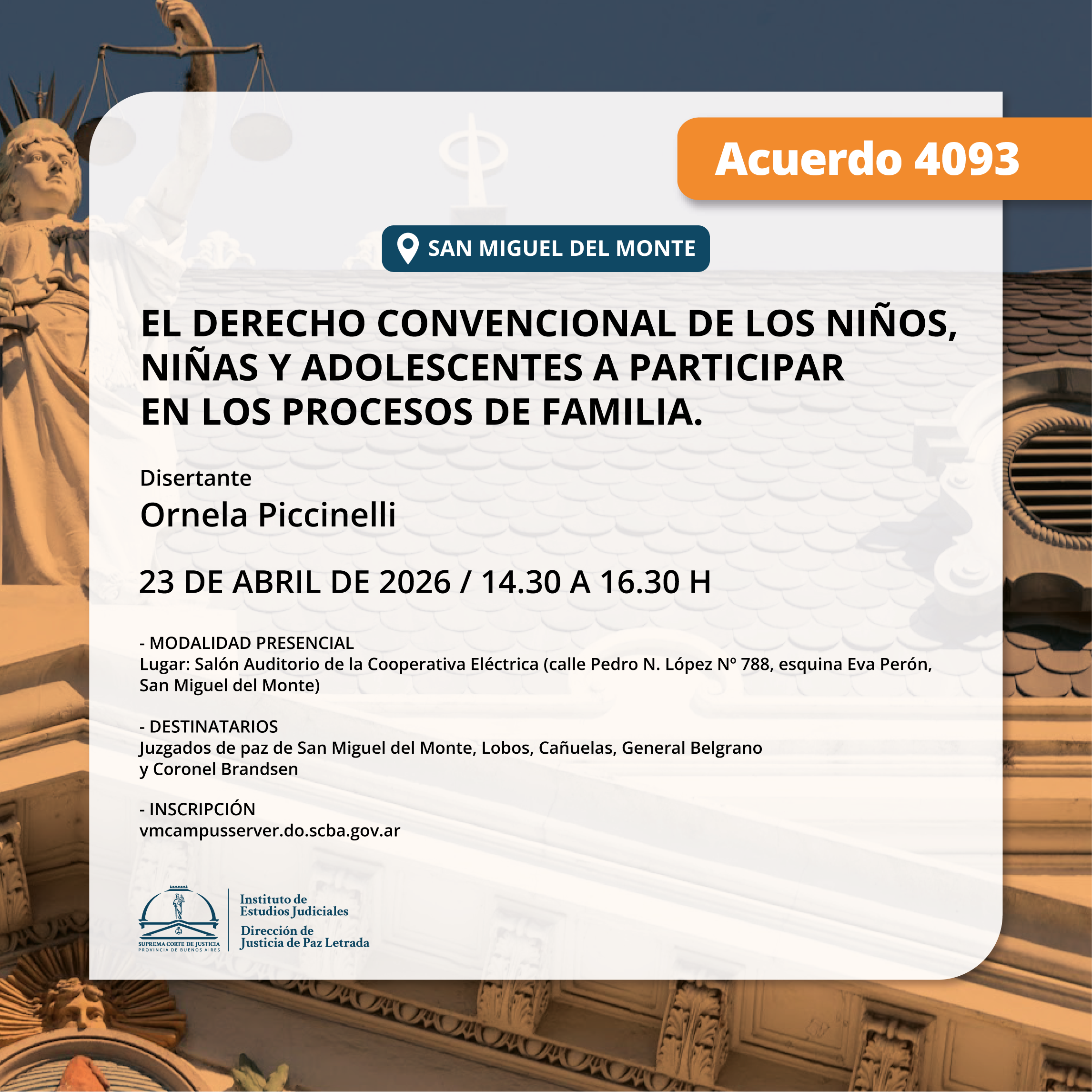 23-04-2026 | SAN MIGUEL DEL MONTE - El derecho convencional de los niños, niñas y adolescentes a participar en los procesos de familia