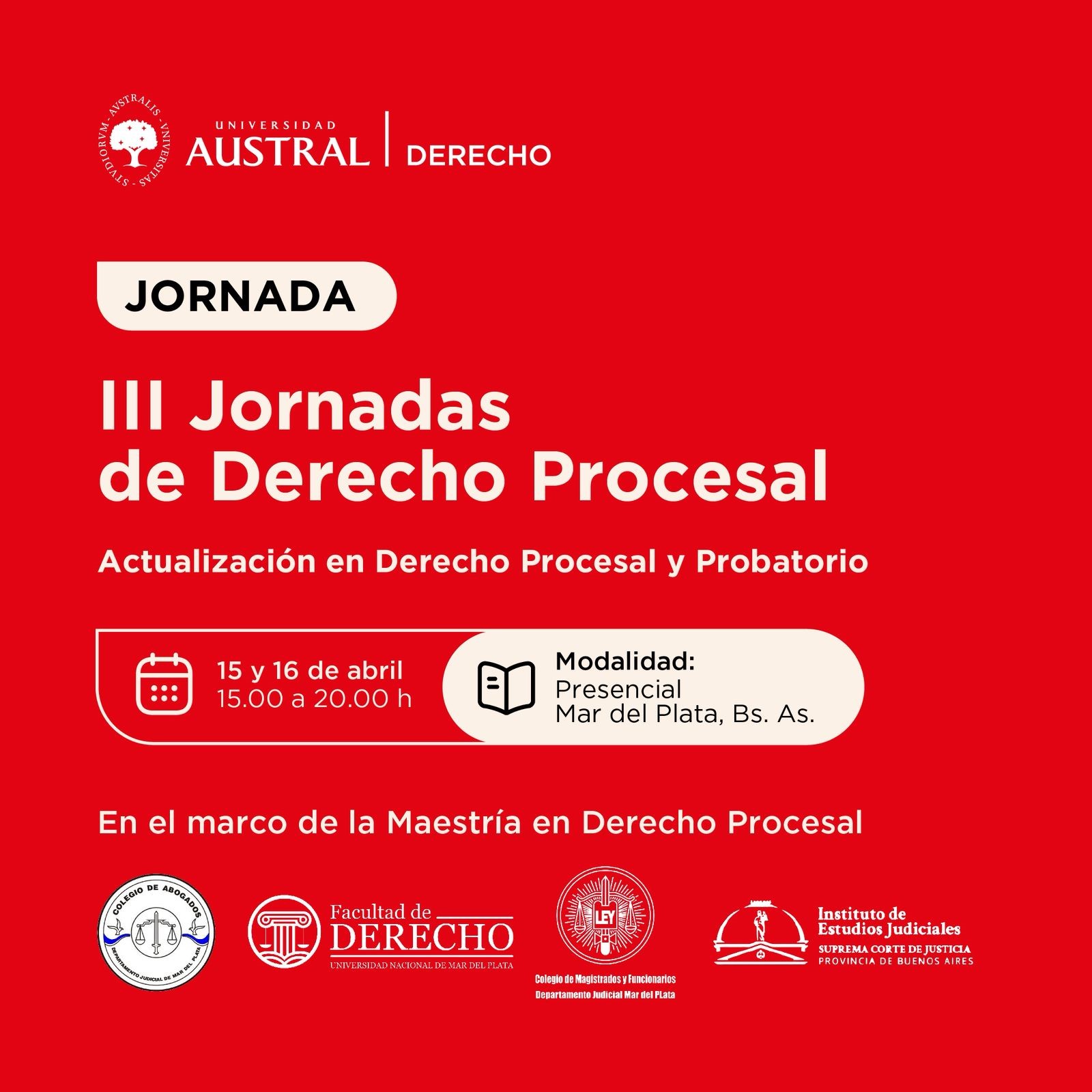 15-04-2026 | MAR DEL PLATA - III Jornadas de Derecho Procesal Actualización en Derecho Procesal y Probatorio