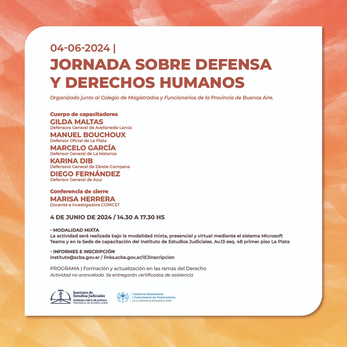 Con el auspicio del Colegio de Magistrados y Funcionarios del Poder Judicial de la Provincia de Buenos Aires y del Colegio de la Magistratura y la Función Judicial del Departamento Judicial de La Plata
