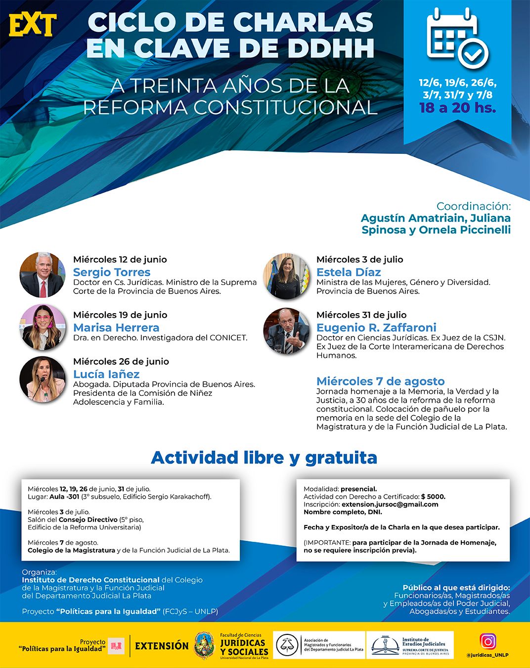 Organizado junto a la Asociación Argentina de Derecho Procesal, Colegio de la Magistratura y la Función Judicial del Departamento Judicial de La Plata (Instituto de Derecho Penal, Instituto de Derecho Procesal Penal, Instituto de Derechos Humanos), Secretaría de Extensión Universitaria de la FCJyS – UNLP.