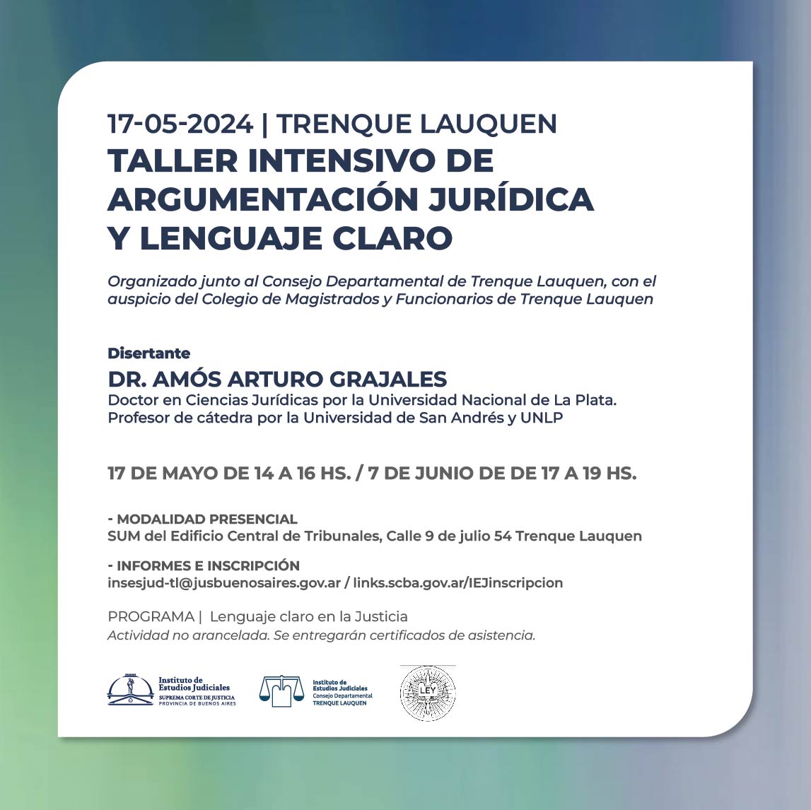 07-06-2024 | TRENQUE LAUQUEN - Taller intensivo de argumentación Jurídica y lenguaje claro