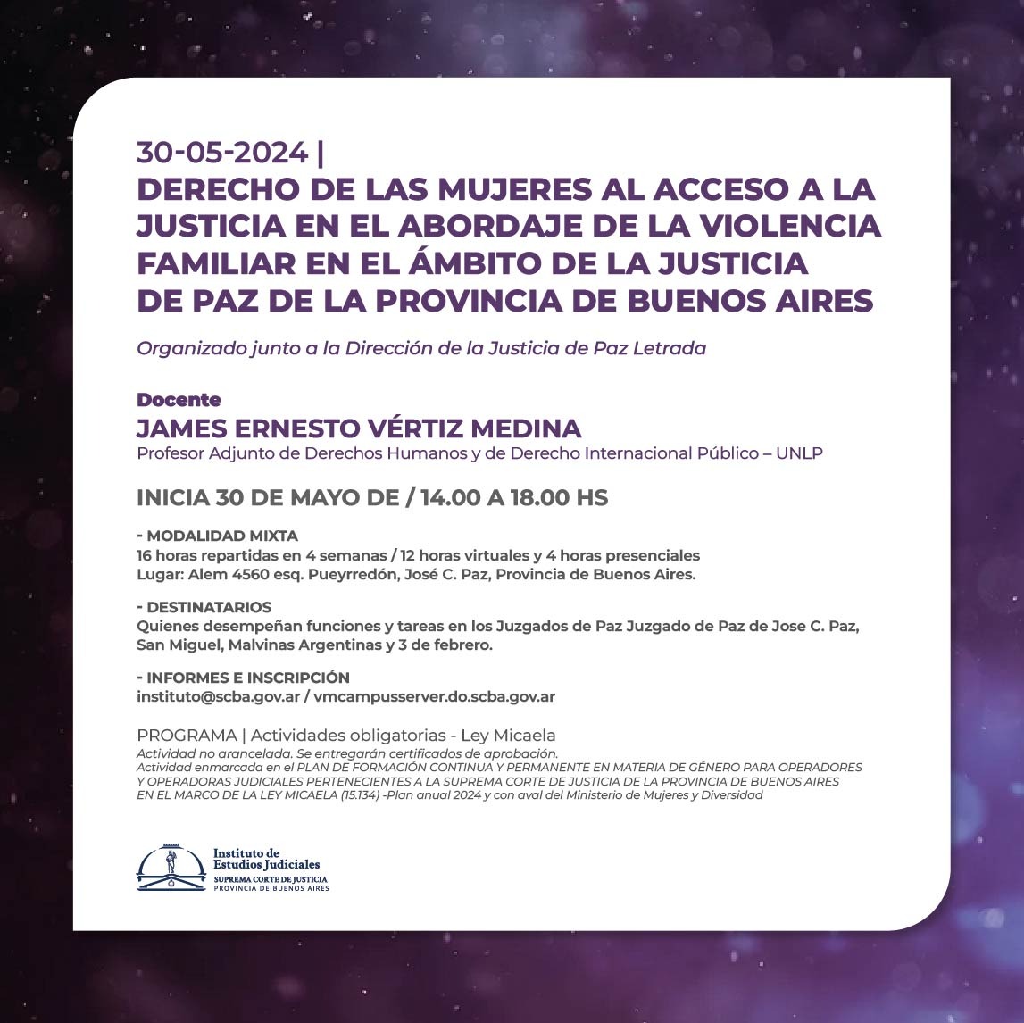 30-05-2024 | JOSE C. PAZ - Derecho de las mujeres al acceso a la justicia en el abordaje de la violencia familiar en el ámbito de la Justicia de Paz de la Provincia de Buenos Aires