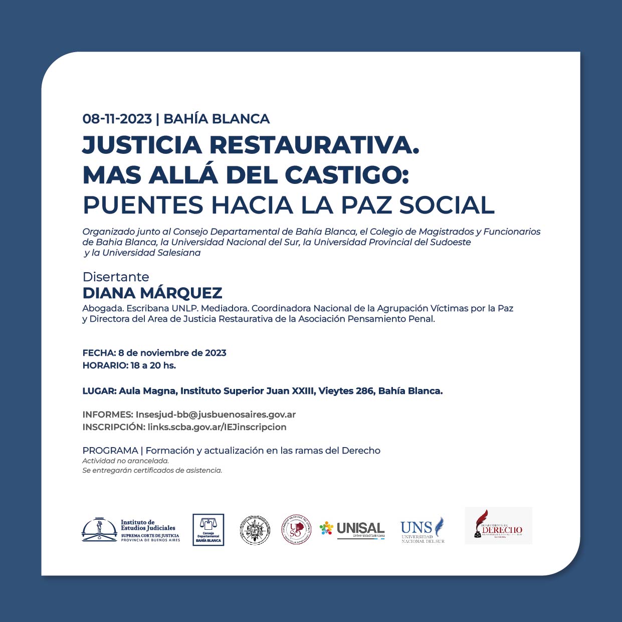 08-11-2023 | BAHIA BLANCA - Justicia restaurativa - Mas alla del castigo: puentes hacia la paz social