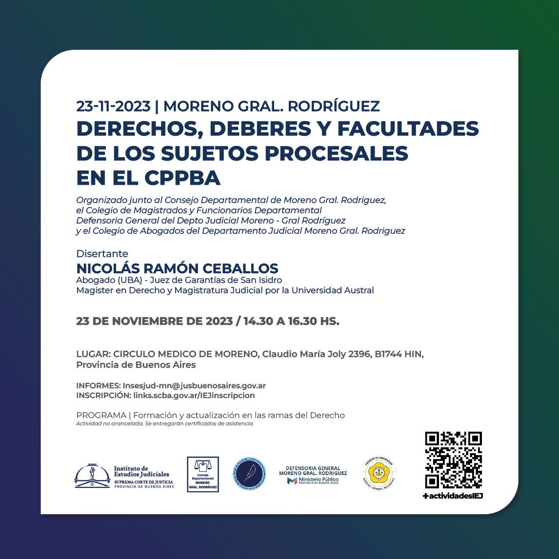 Organizado junto al Consejo Departamental, el Colegio de Magistrados y Funcionarios de Moreno General Rodriguez, la Defensoría General de Moreno Gral. Rodriguez y el Colegio de Abogados de Moreno Gral. Rodriguez