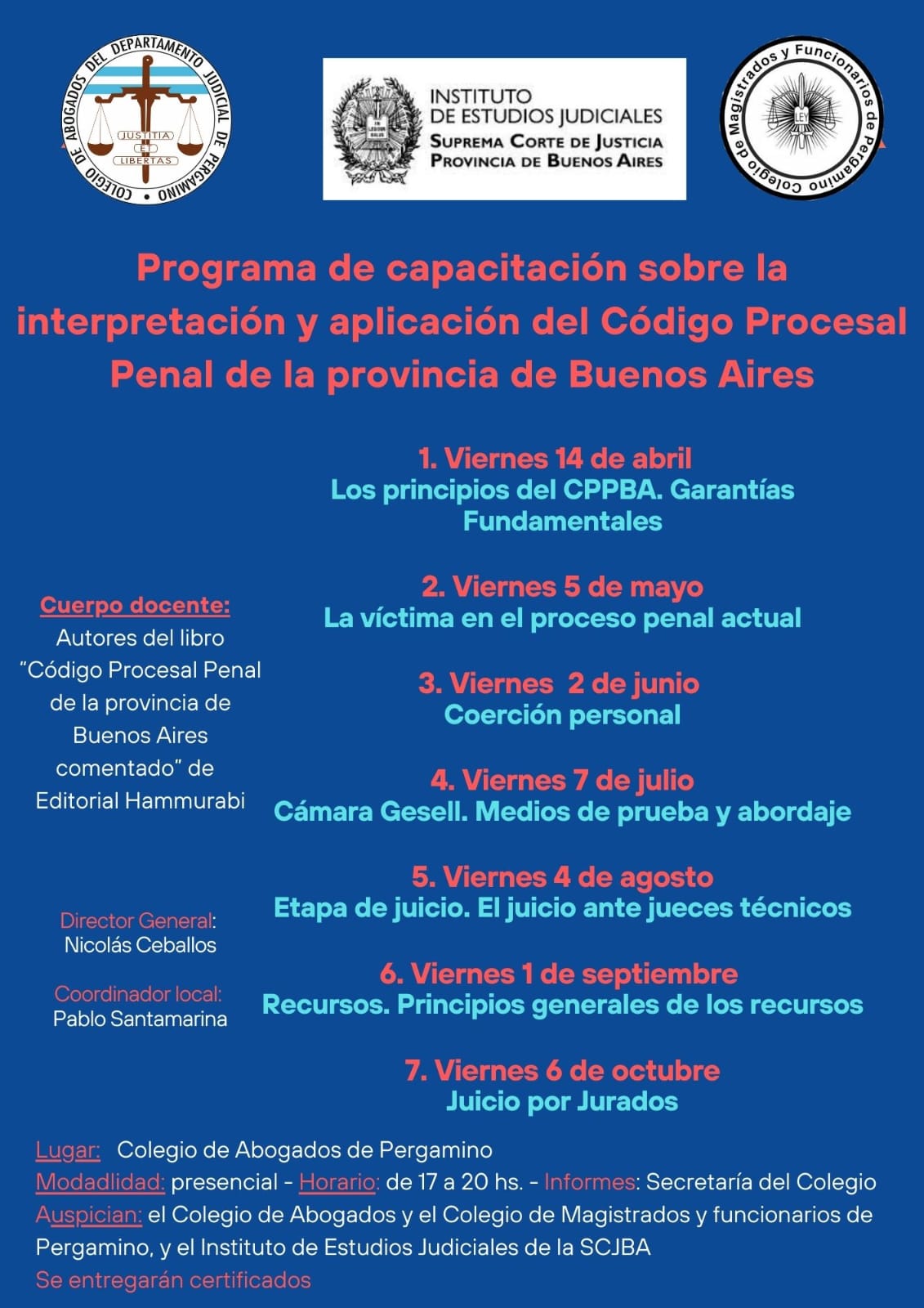 07-07-2023 | PERGAMINO - Programa de difusion y debate sobre la interpretacion y aplicacion del Codigo Procesal Penal de la Provincia de Buenos Aires