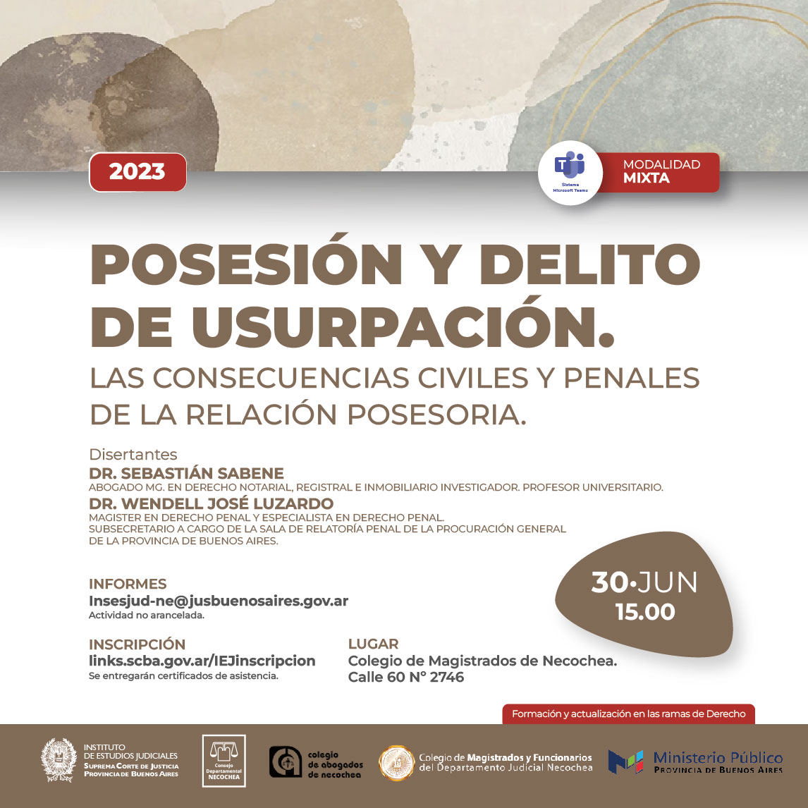 30-06-2023 | NECOCHEA - Posesión y delito de usurpación. Las consecuencias civiles y penales de la relación posesoria
