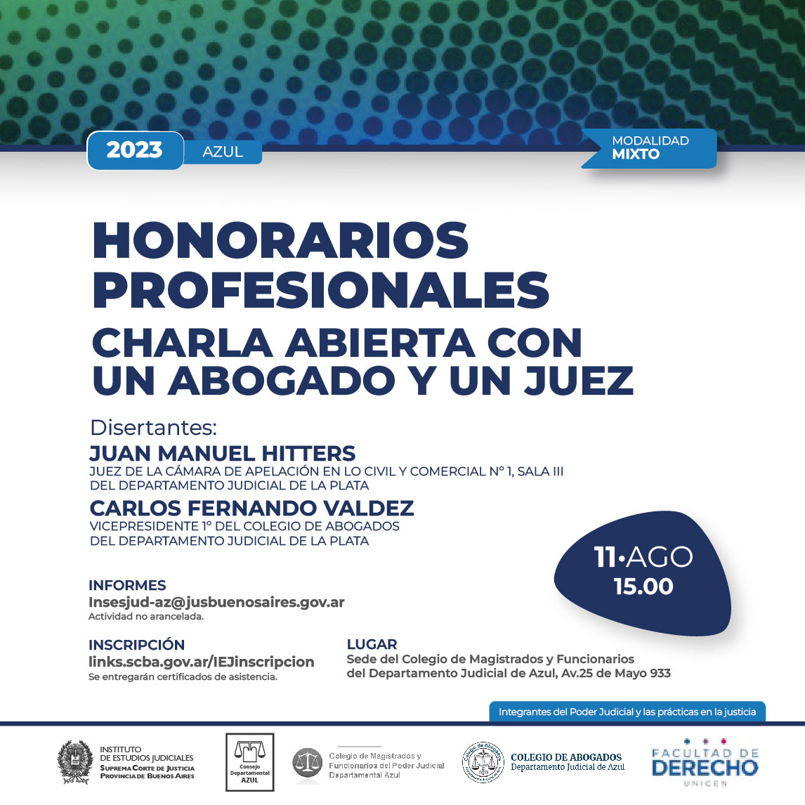 11-08-2023 | AZUL - Honorarios Profesionales: "Charla abierta con un abogado y un juez"