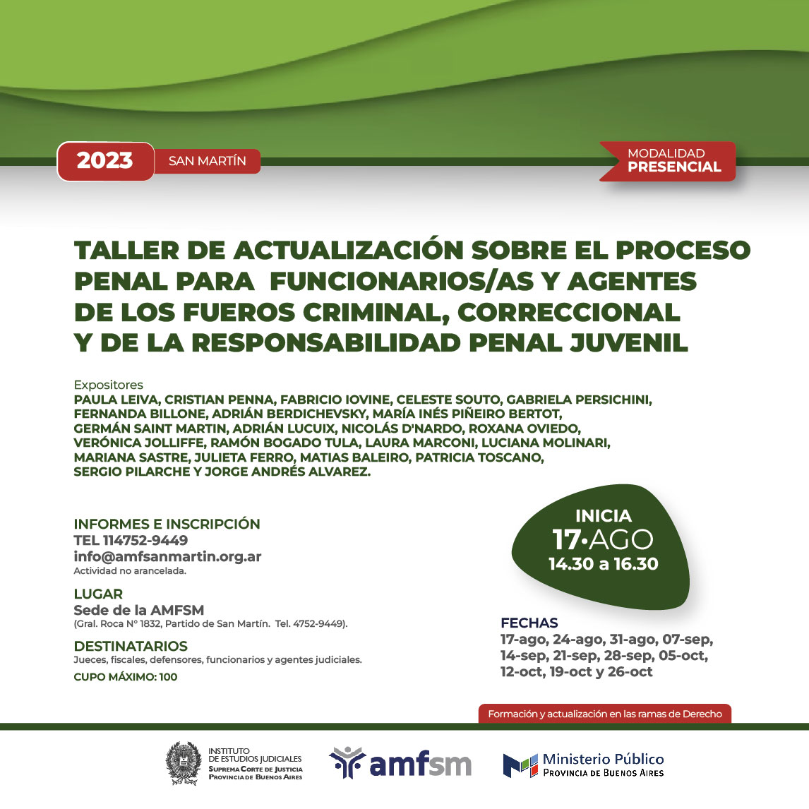17-08-2023 | SAN MARTIN - Taller de actualización sobre el proceso penal para funcionarios/as y agentes de los fueros criminal, correccional y de la responsabilidad penal juvenil
