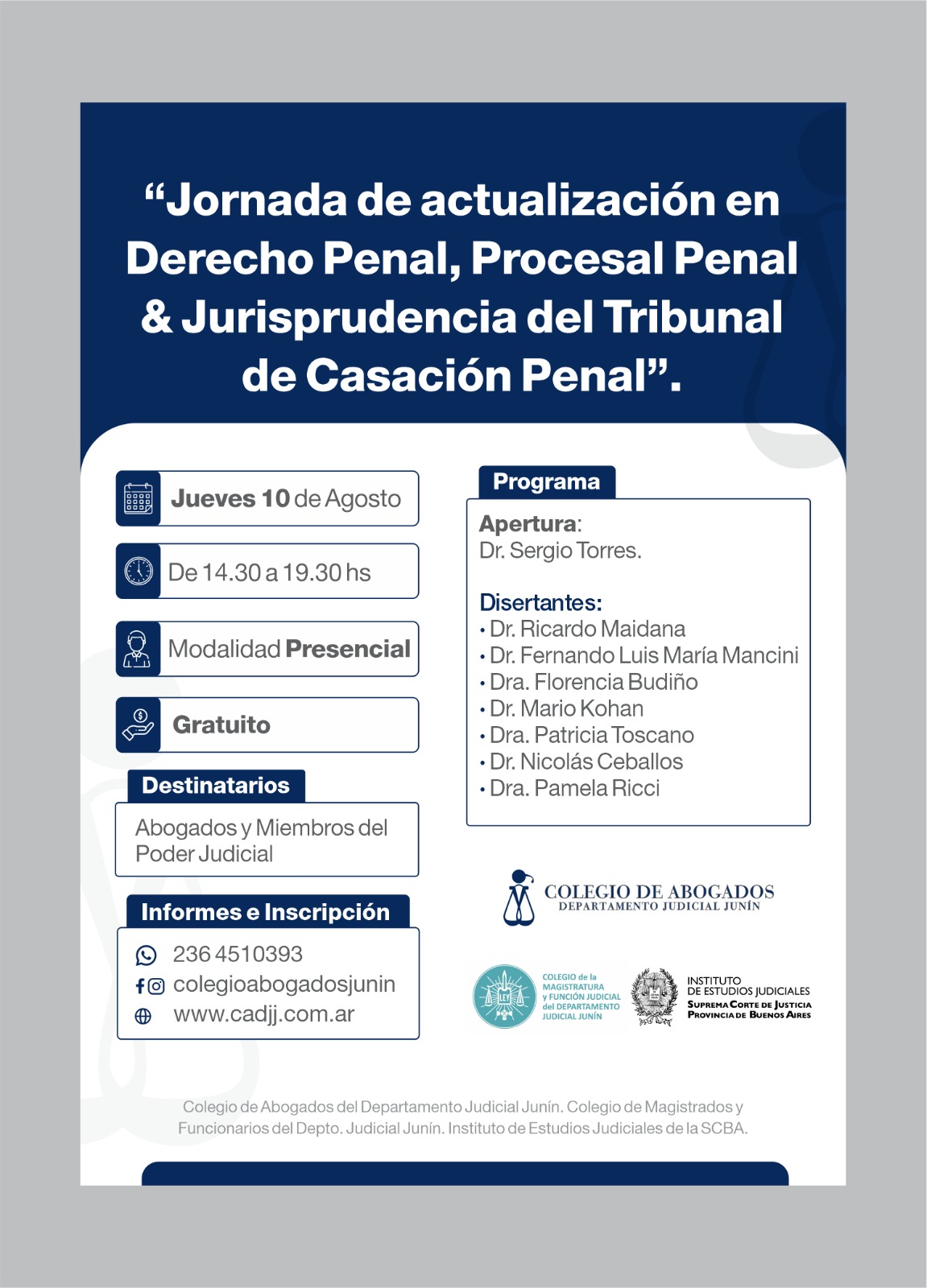10-08-2023 | JUNIN - Jornada de actualizacion en Derecho Penal, Procesal Penal y Jurisprudencia del Tribunal de Casaci¾n Penal