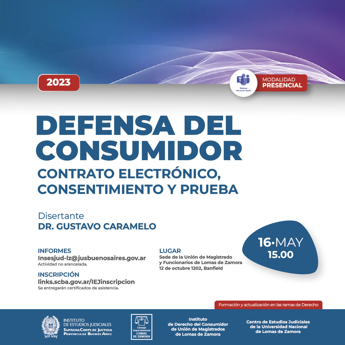 Organizado junto al Instituto de Derecho del Consumidor de Unión de Magistrados de Lomas de Zamora , el Centro de Estudios Judiciales de la Universidad Nacional de Lomas de Zamora y el Consejo Departamental de Lomas de Zamora.