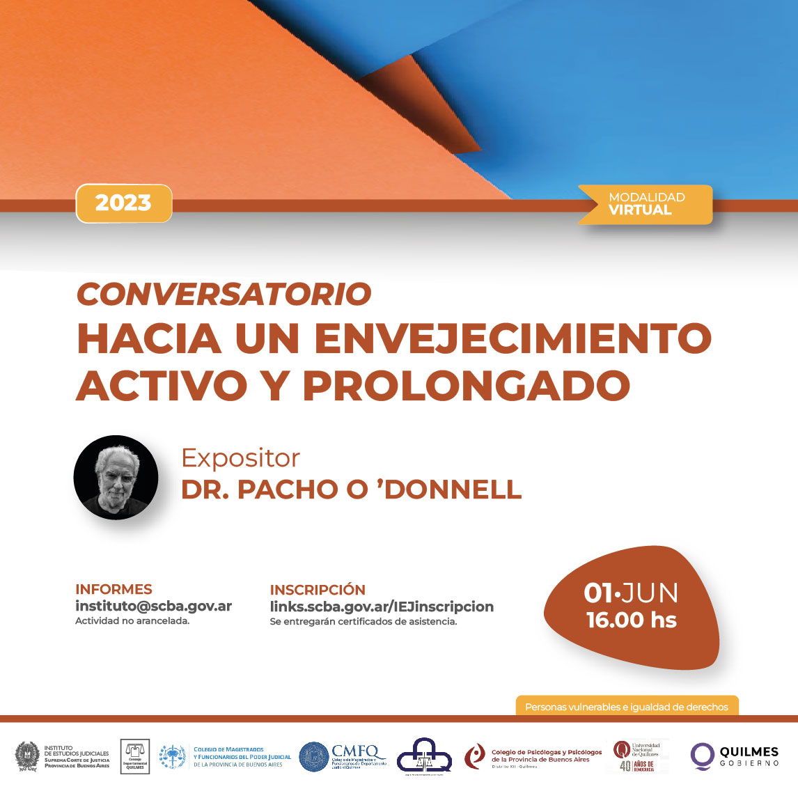 01-06-2023 | QUILMES - Conversatorio: Hacia un envejecimiento activo y prolongado ( a distancia )