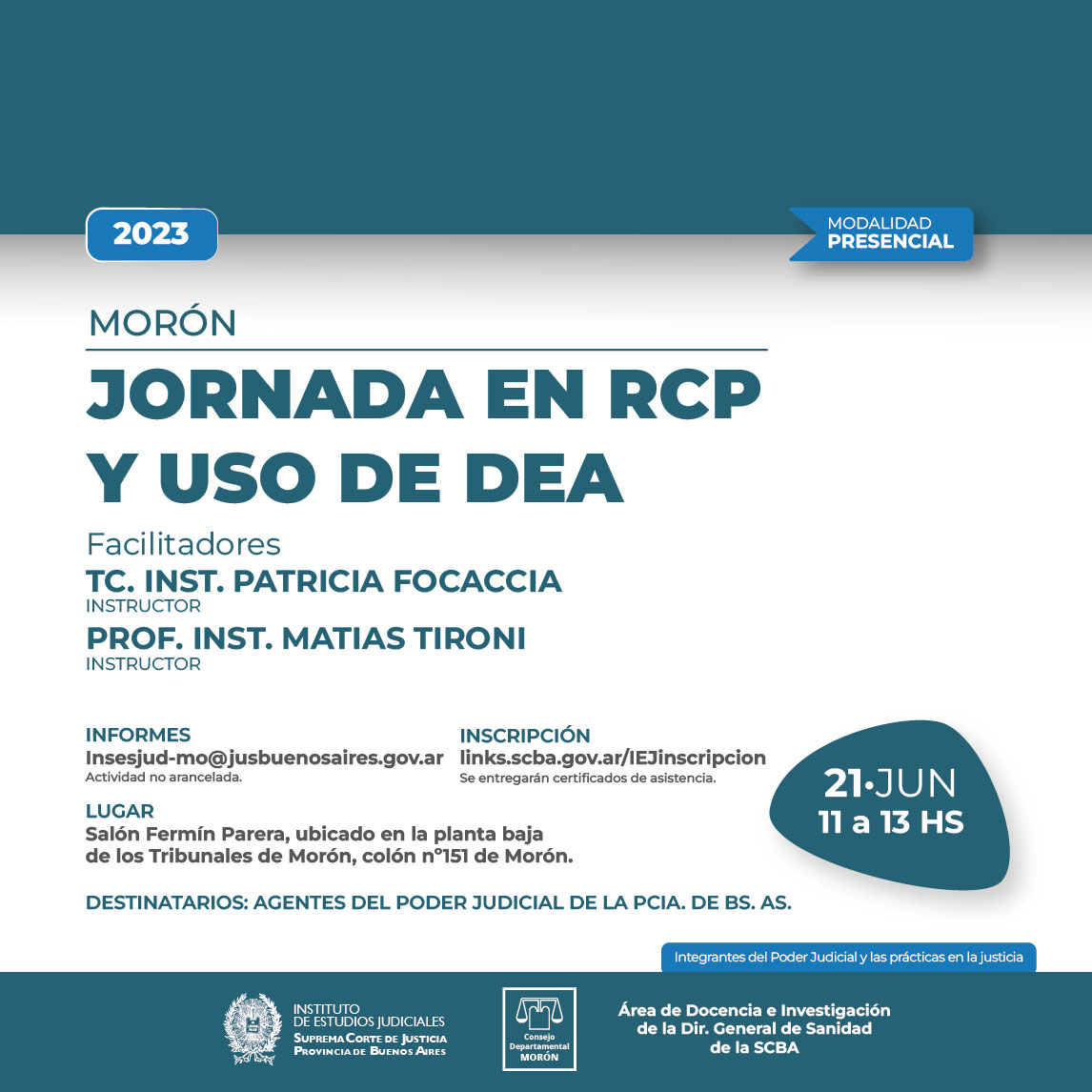 Organizado junto al Área de Docencia e Investigación de la Dir. General de Sanidad de la SCBA y el Consejo Departamental del IEJ sede Morón