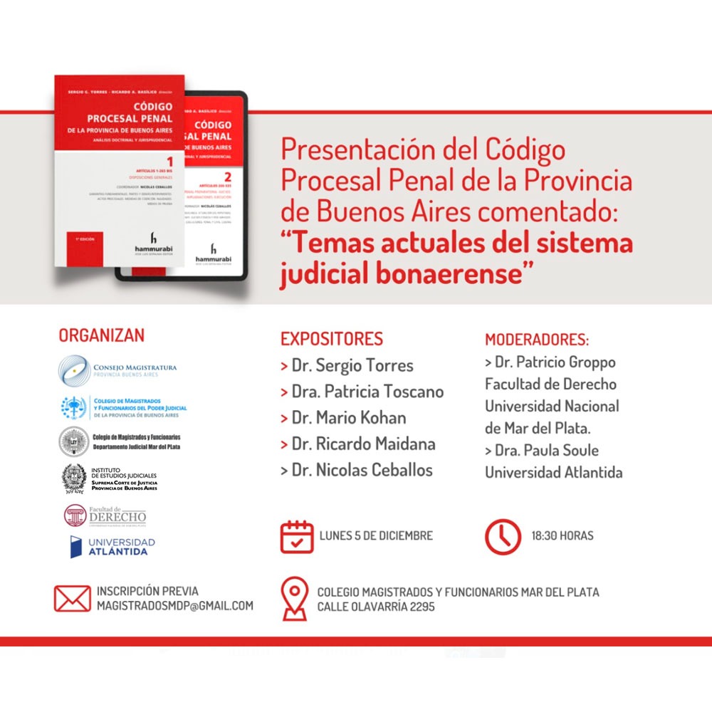 05-12-2022 | MAR DEL PLATA - Presentación del Codigo Procesal Penal de la Provincia de Buenos Aires comentado: Temas actuales del sistema Judicial bonaerense