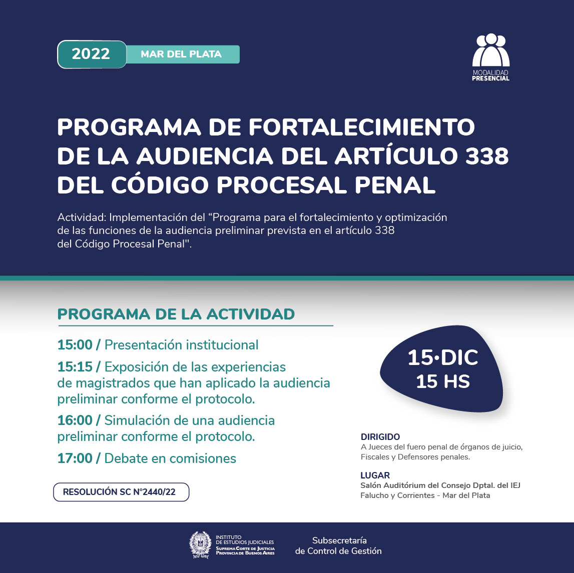 15-12-2022 | MAR DEL PLATA - Programa de fortalecimiento de la audiencia del Art. 338 del C.P.P.