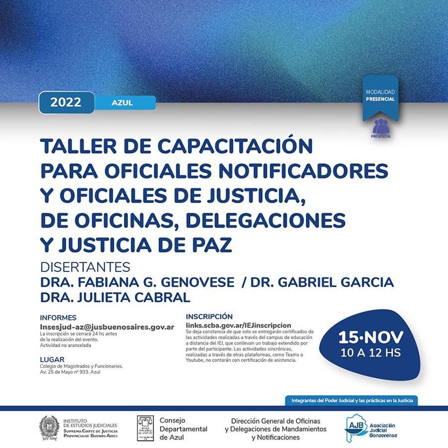 15-11-2022 | AZUL - Taller de capacitación para Oficiales Notificadores y Oficiales de Justicia, de Oficinas, Delegaciones y Justicia de Paz