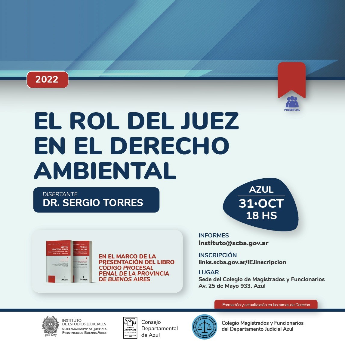 Organizado por el Consejo Departamental del Instituto Estudios Judiciales, del departamento judicial Azul junto al Colegio Magistrados y Funcionarios de Azul