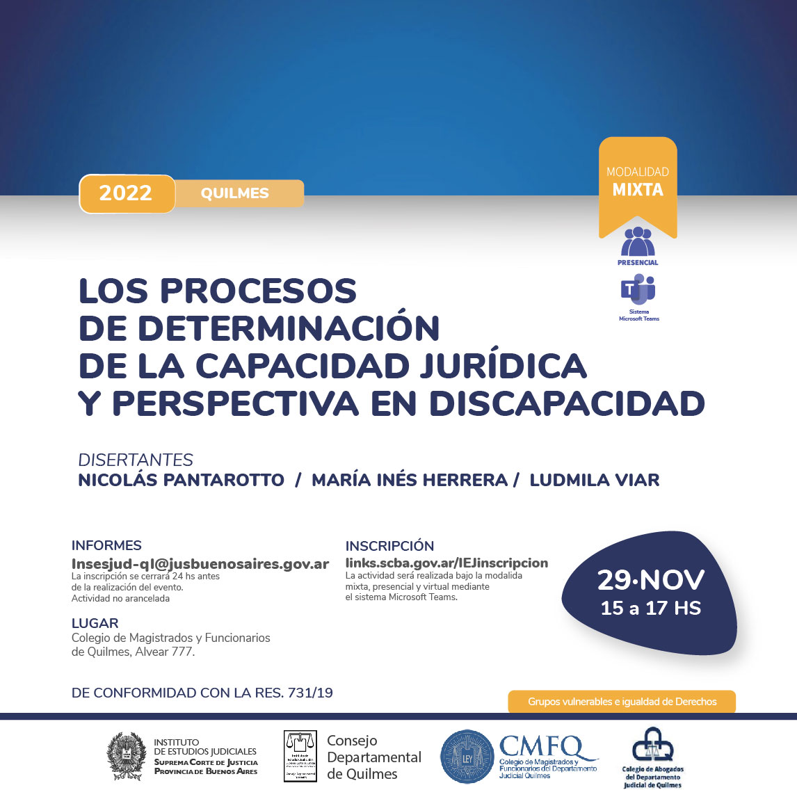 29-11-2022 | QUILMES - Los Procesos de Determinación de la Capacidad Jurídica y Perspectiva en Discapacidad