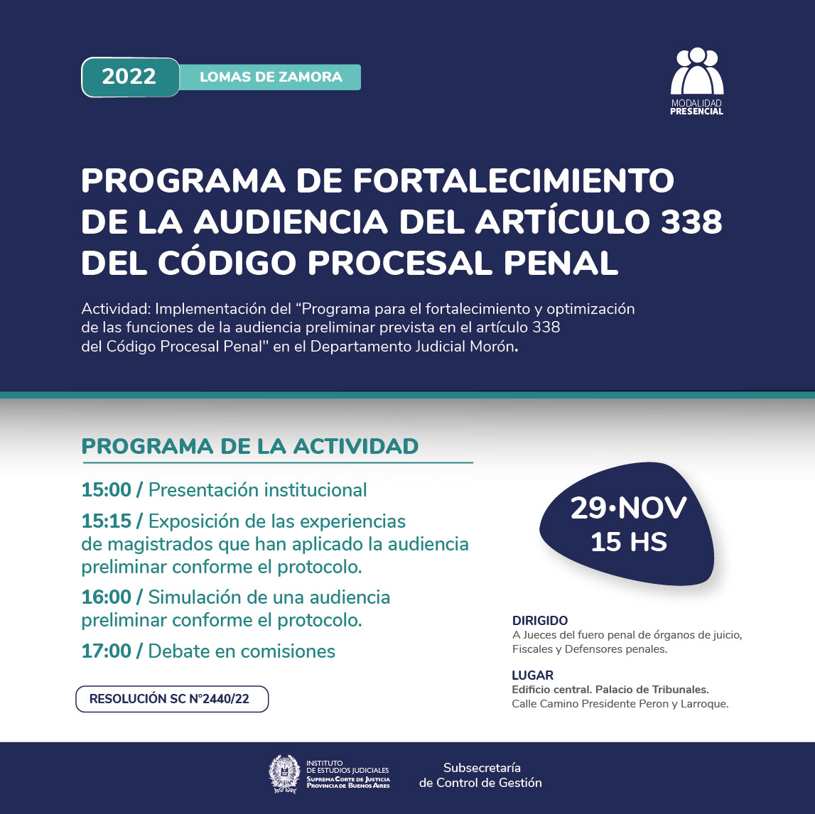 29-11-2022 | LOMAS DE ZAMORA - Programa de fortalecimiento de la audiencia del Art. 338 del C.P.P.
