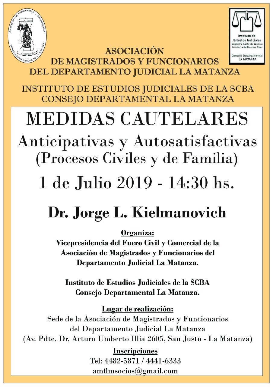 01-07-2019 | LA MATANZA - Medidas cautelares anticipativas y autosatisfactivas. Procesos civiles y de familia