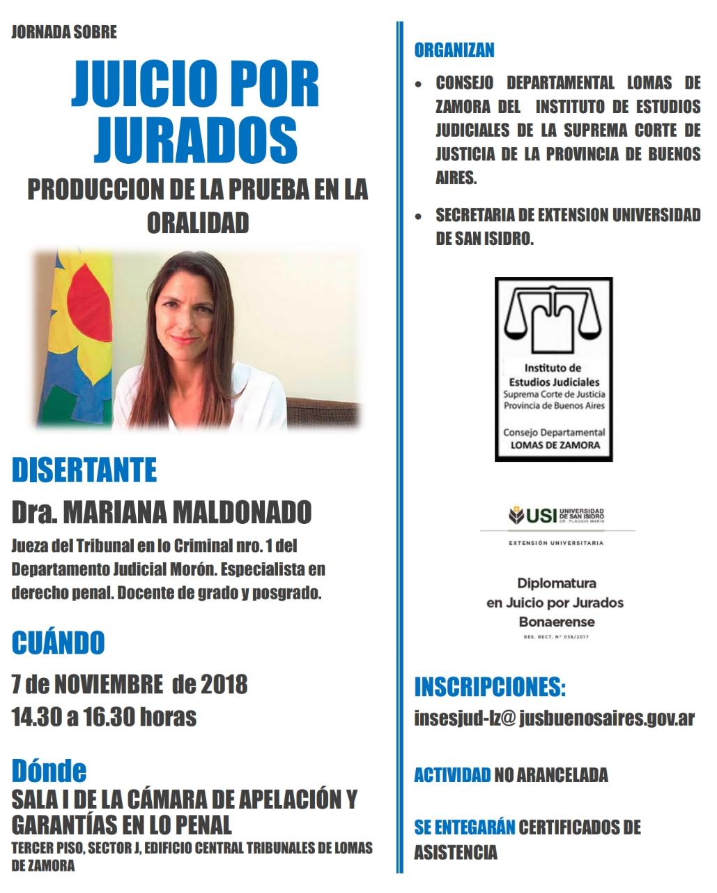 07-11-2018 | LOMAS DE ZAMORA - Juicio por jurados. Producción de la prueba en la oralidad