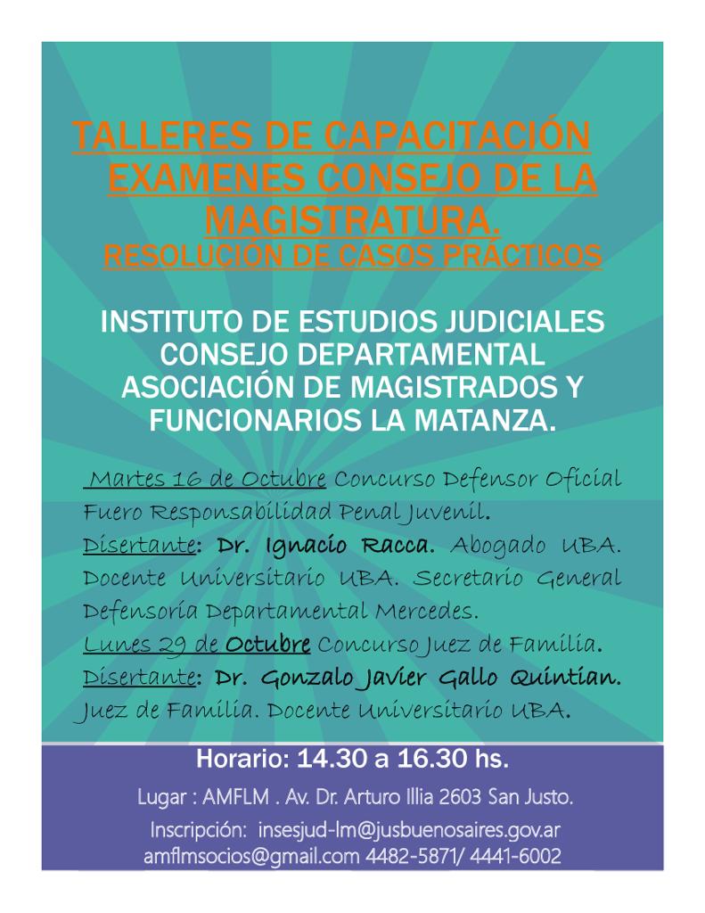 16-10-2018 | LA MATANZA - Taller de capacitación: exámenes Consejo de la Magistratura, resolución de casos prácticos