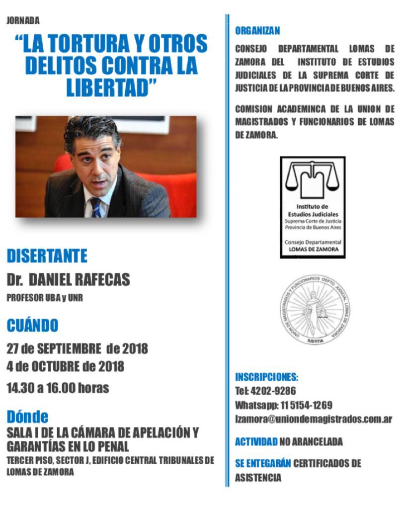 27-09-2018 | LOMAS DE ZAMORA - La tortura y otros delitos contra la libertad