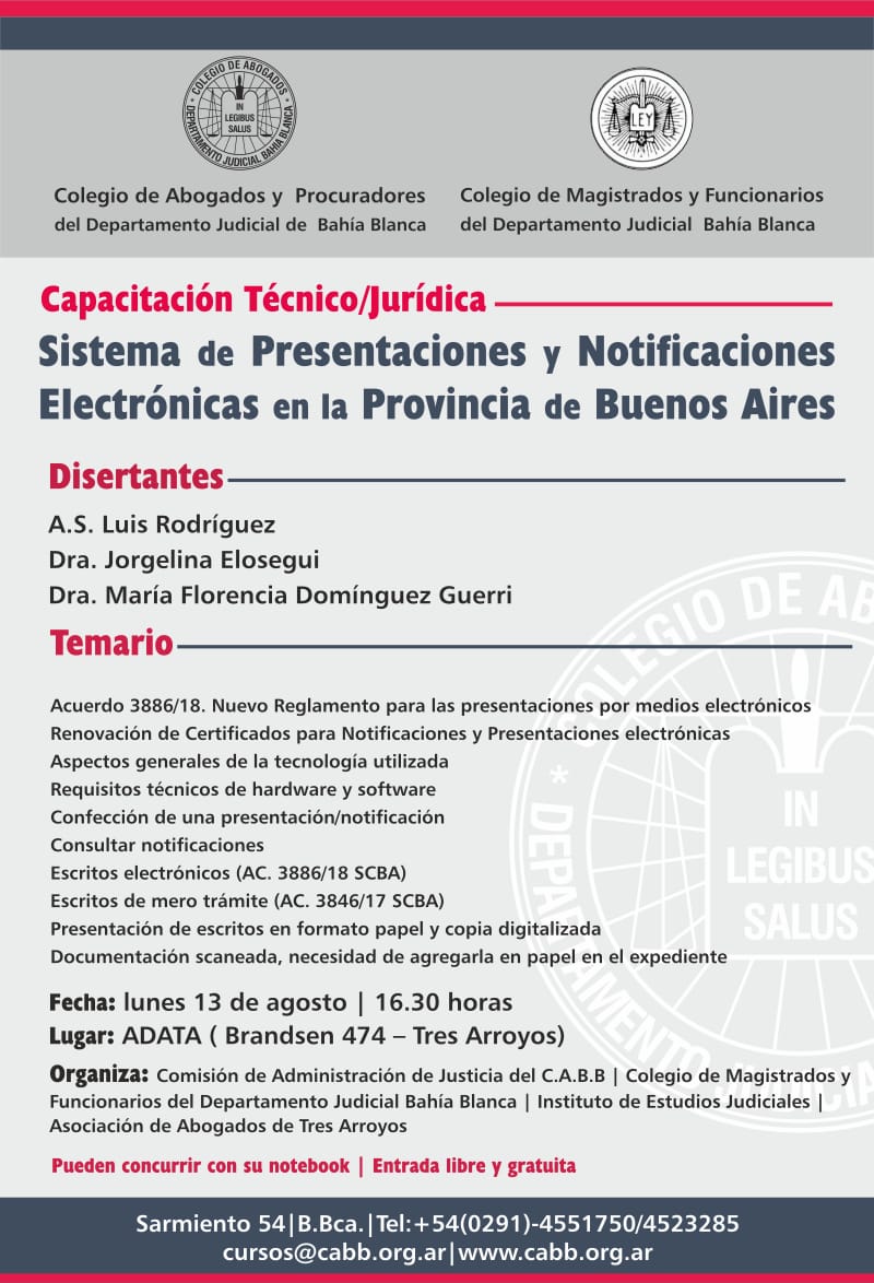 13-08-2018 | TRES ARROYOS - Sistema de presentaciones y notificaciones electrónicas en la provincia de Buenos Aires