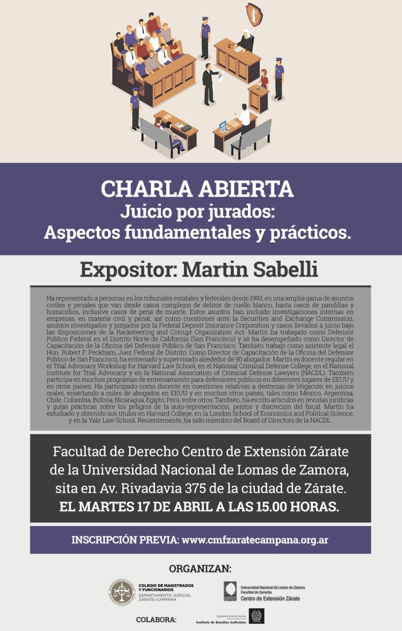 17-04-2018 | ZARATE CAMPANA - Charla abierta. Juicio por jurados: Aspectos fundamentales y prácticos.