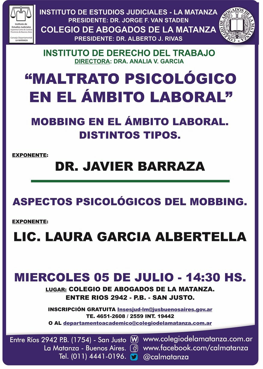 05-07-2017 | LA MATANZA - Maltrato psicológico en el ámbito laboral.