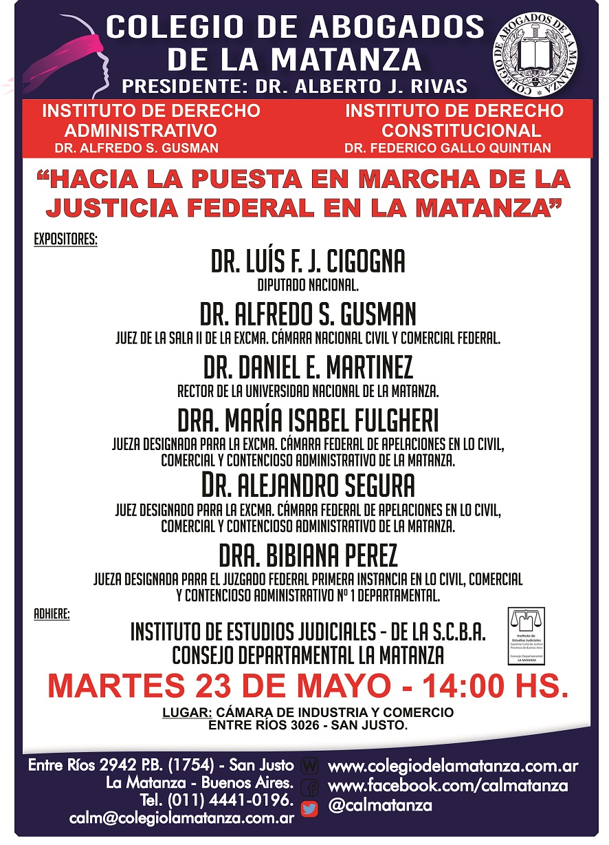 Organizado por el Consejo Departamental junto con el Colegio de Abogados de La Matanza.