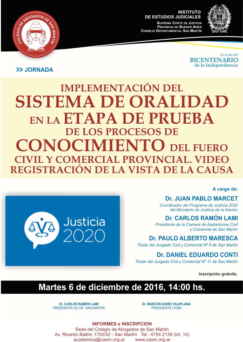 06-12-2016 | SAN MARTIN- Implementación del sistema de oralidad en la etapa de prueba de los procesos de conocimiento del Fuero Civil y Comercial Provincial.