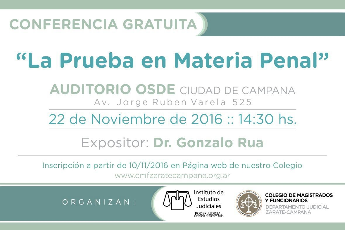 22-11-2016 | ZARATE- CAMPANA. La prueba en el Proceso Penal.