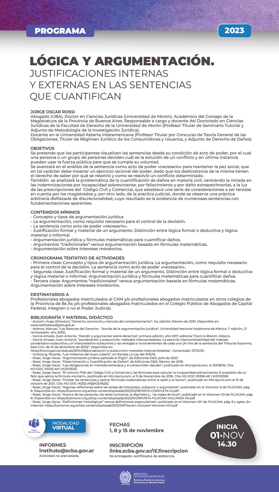 PROGRAMA: Formación y actualización en las ramas del Derecho