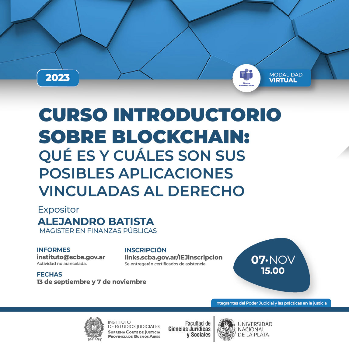 07-11-2023 | Curso introductorio sobre Blockchain: qué es y cuáles son sus posibles aplicaciones vinculadas al derecho ( a distancia )