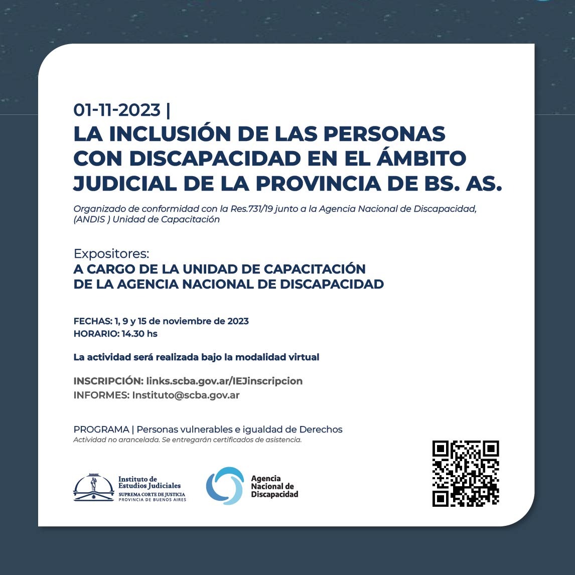 Organizado de conformidad con la Res.731/19 junto a la Agencia Nacional de Discapacidad, ( ANDIS ) Unidad de Capacitación