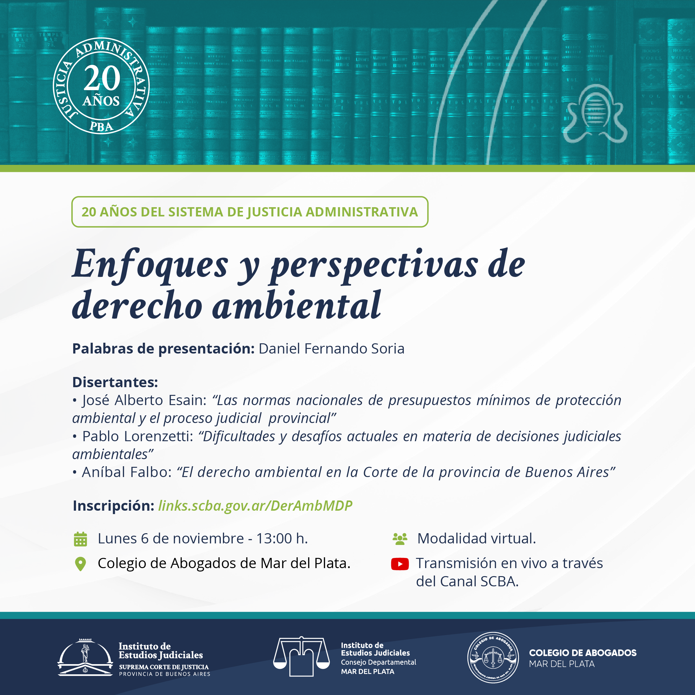 La actividad será realizada bajo la modalidad virtual mediante transmisión en vivo por el canal de de la SCBA