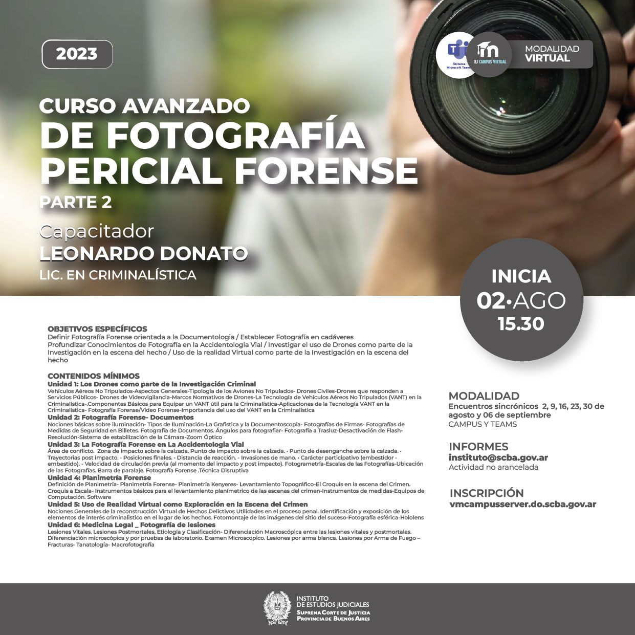 02-08-2023 | Curso Avanzado de Fotografía Pericial Forense ( a distancia )