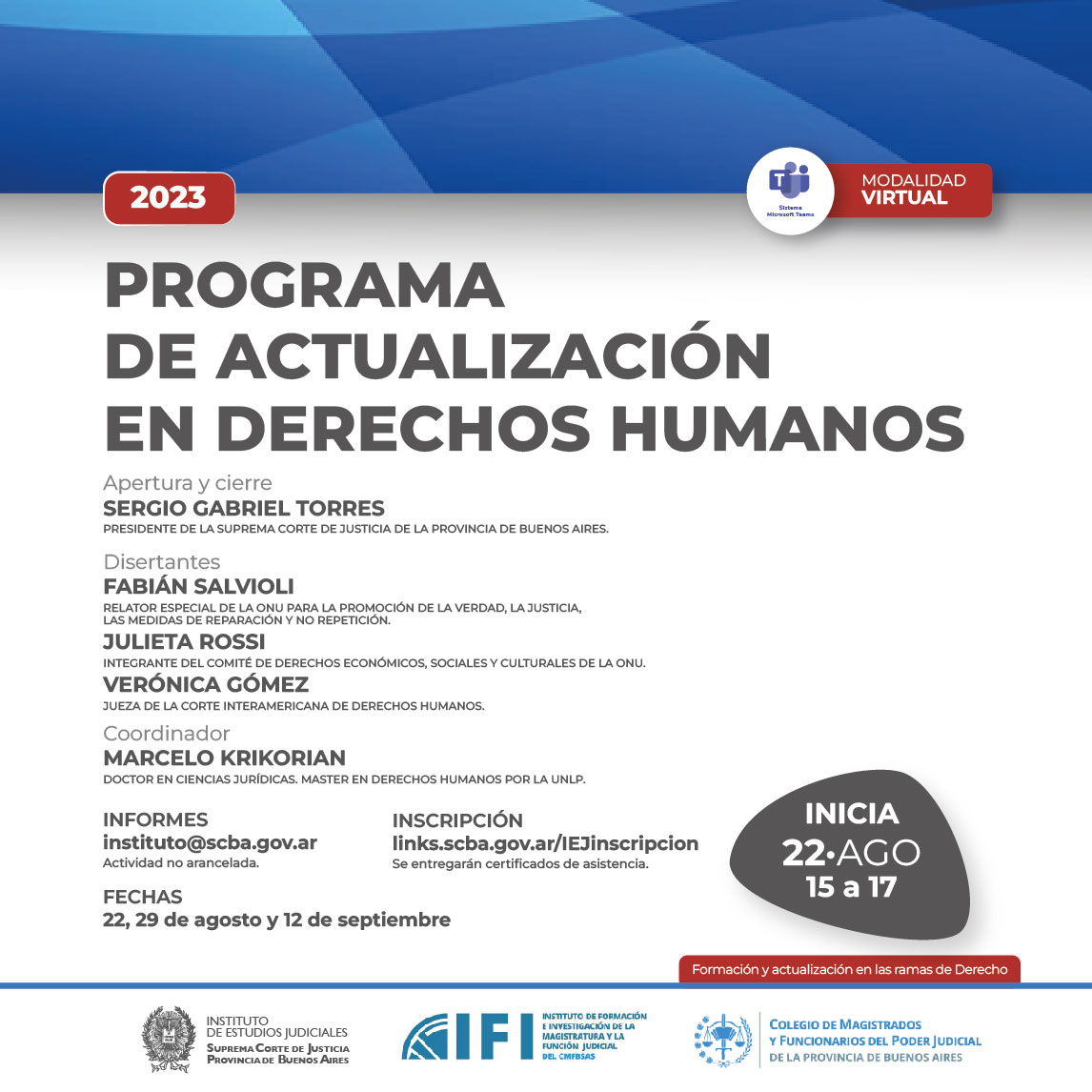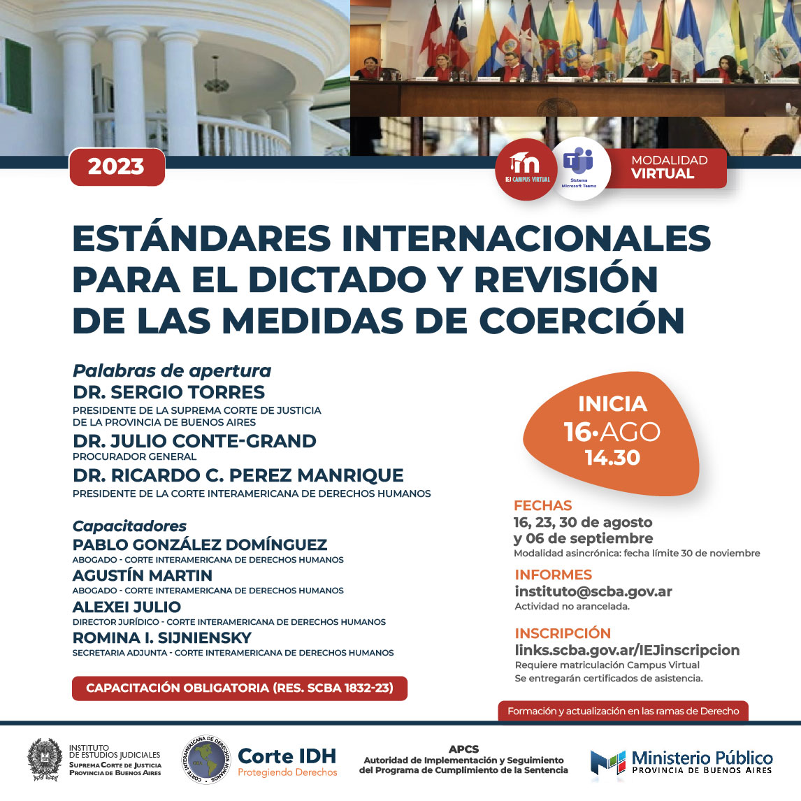 Organizado junto a Autoridad de Implementación y Seguimiento del Programa de Cumplimiento de la Sentencia APCS, la Corte IDH y el Ministerio Público de la Provincia de Buenos Aires, de conformidad con la Res. 1832/23 de la SCBA