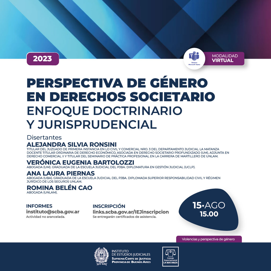 15-08-2023 | Perspectiva de Género en Derechos Societario- Enfoque Doctrinario y Jurisprudencial ( a distancia )