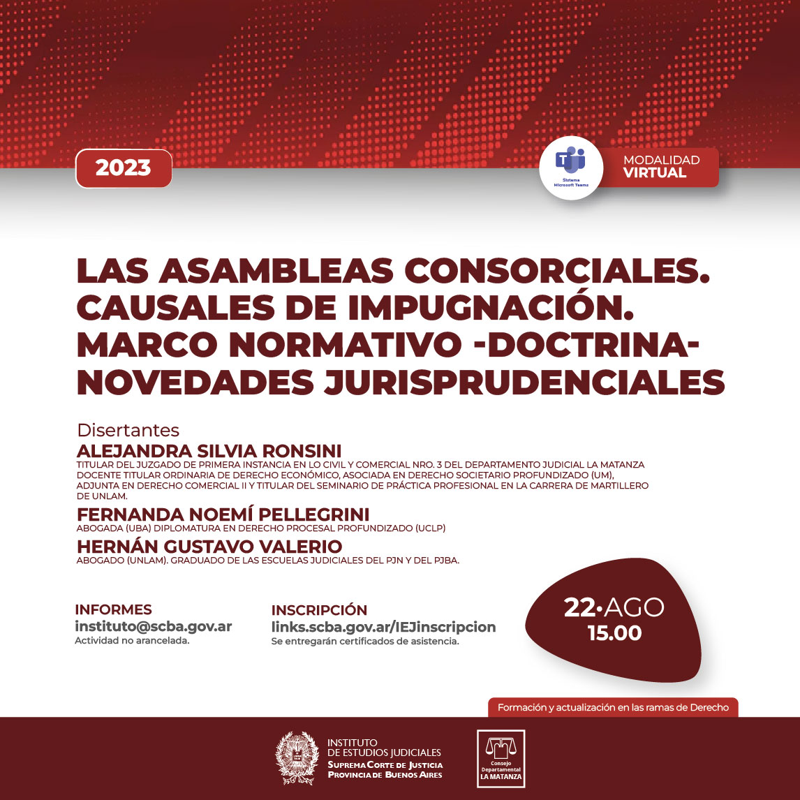 22-08-2023 | Las asambleas Consorciales. Causales de Impugnación. Marco Normativo-Doctrina-Novedades Jurisprudenciales ( a distancia )