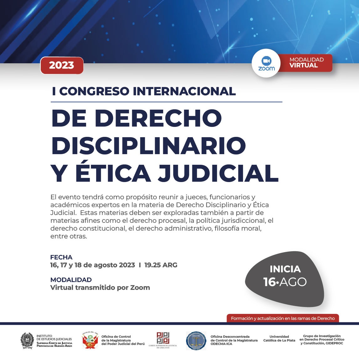 16-08-2023 | I CONGRESO DE DERECHO DISCIPLINARIO Y ETICA JUDICIAL ( a distancia )