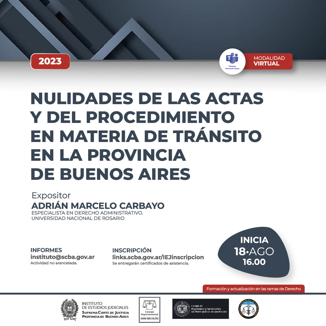 Organizado junto a la Escuela Judicial del Consejo de la Magistratura de la Provincia de Buenos Aires, de conformidad con la Res.2250